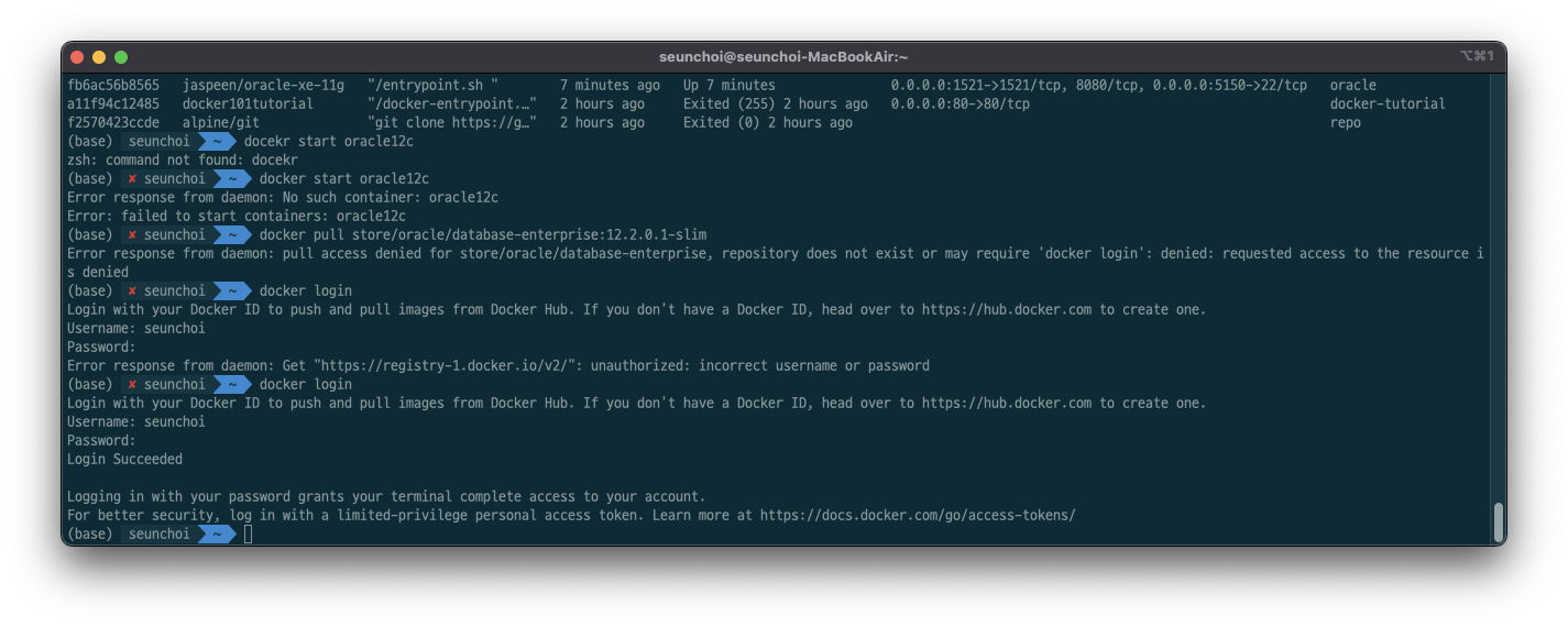 여러 버전의 오라클도 설치해보고,, 여러번 컨테이너도 날려봤는데 해결이 안되서 오늘은 이만...