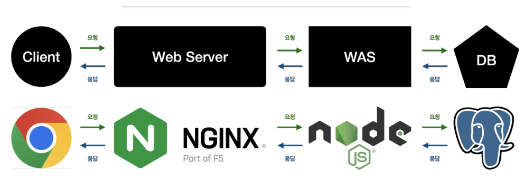 대표적인 WAS로는 Tomcat이 있으며 Node.js는 웹서버 또는 WAS 둘 다 사용할 수 있다.